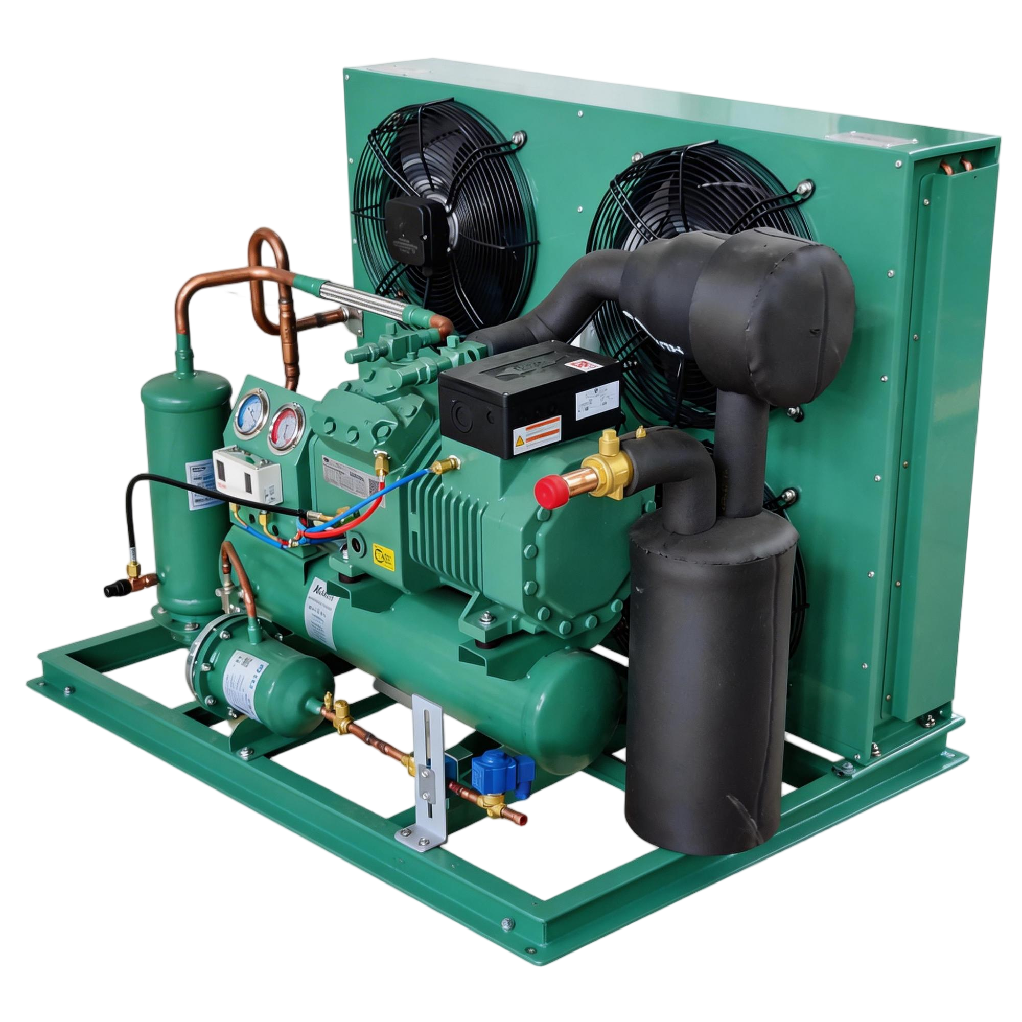 This type of condensing unit is designed with an open architecture, which means that the compressor is exposed and accessible for maintenance and repair. The open design allows for easy inspection of the components and simplifies troubleshooting.