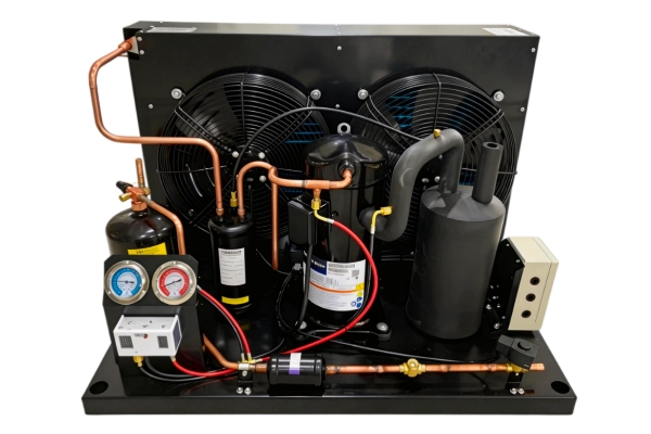 This type of condensing unit is designed with an open architecture, which means that the compressor is exposed and accessible for maintenance and repair. The open design allows for easy inspection of the components and simplifies troubleshooting.