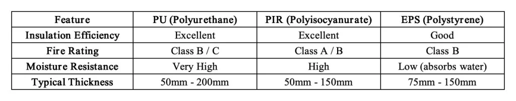 Not all cold room panels are created equal. The “filling” determines the panel’s efficiency, cost, and application. There are three primary types of cores used in the industry.